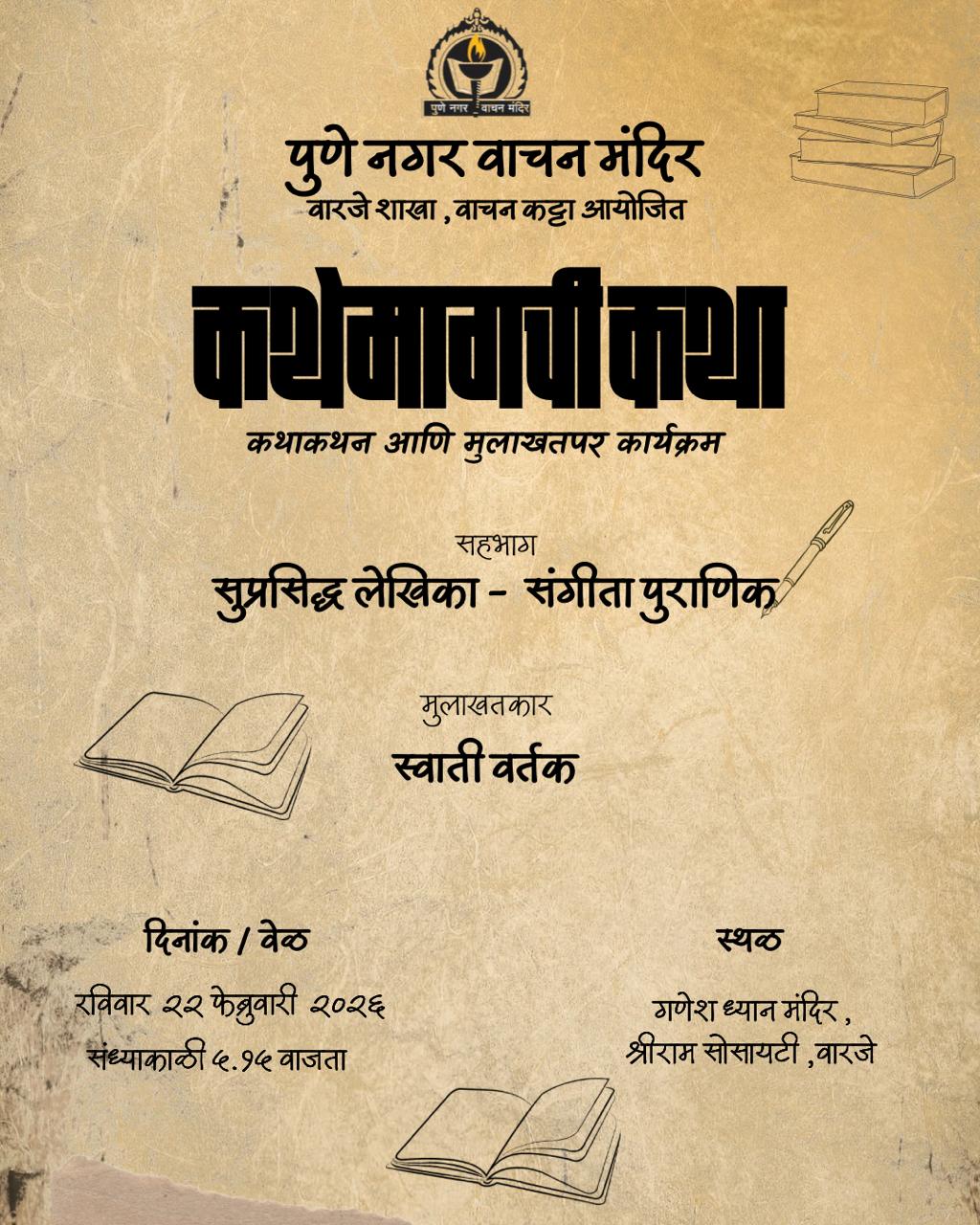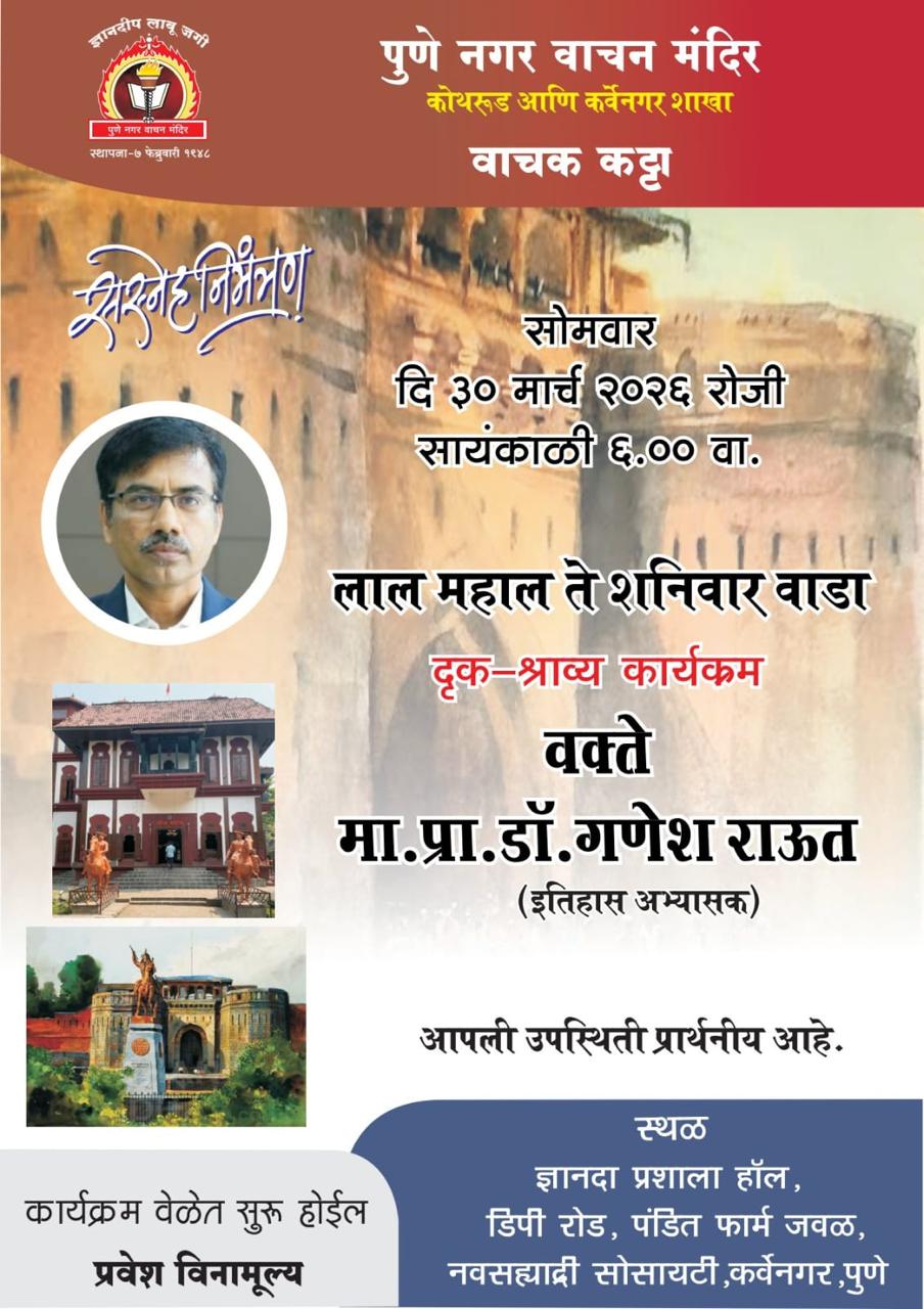 पुणे नगर वाचन मंदिराची महत्त्वपूर्ण इमारत, पुणे शहरातील ऐतिहासिक स्थळ, हे अनेक शैक्षणिक कार्यशाळा, साहित्यिक कार्यक्रम आणि चर्चासत्रांचे आयोजन करते.
