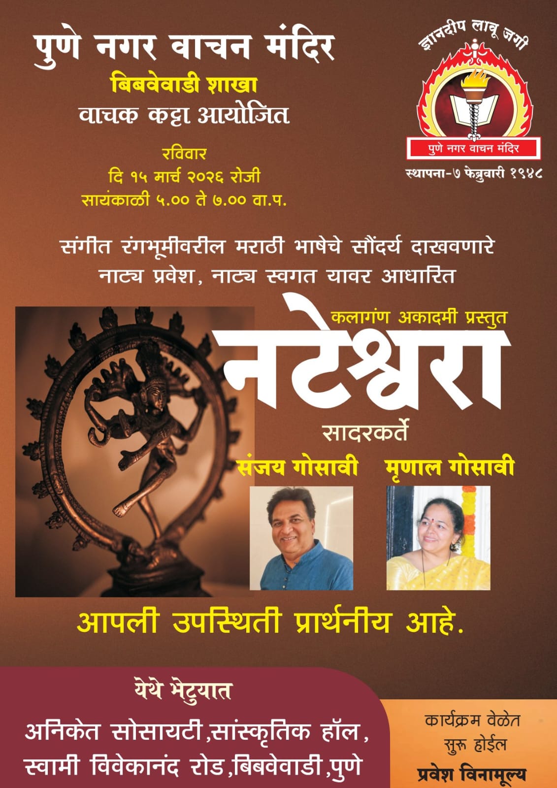 The Establishment of Pune Nagar Vachan Mandir on 7th February 1848. History of Poona Native General Library, contributions by Mahadev Govind Ranade and other key personalities.